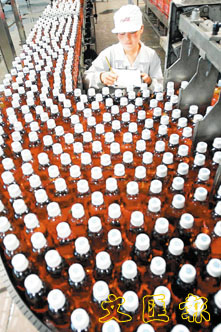 「五一」假期結束,北京可口可樂飲料有限公司一名工人在生產線上監控飲料生產。 (新華社)