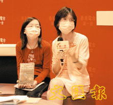 何瑞珠教授與女兒分享閱讀樂趣。(伍秋雙攝)
