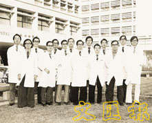 劉大鈞醫生(前左二)六十年代當實習醫生時與一班同事在伊利沙伯醫院前合照,後排左一為黃志偉醫生。