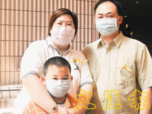 淘大的梁太與夫兒出席簡報會,她有信心學童不會受感染。 (楊子慧 攝)