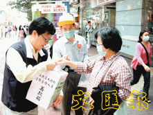【本報訊】(記者 施立偉)由全港一千多個團體參與的「全民抗炎大行動」昨日在全港一百四十多個地點發起街頭籌款活動,所得善款會捐贈給醫管局善慈基金,以支持醫護人員對抗「沙士」,並對受感染的醫護人員表示真誠的慰問及由衷的敬佩。由於是周日及「母親節」關係,街上人頭湧湧,市民都踴躍捐款。