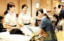 在病榻前,護士們互相支持和鼓勵。(趙焜崗 攝)