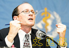 世衛專家詹姆斯•馬圭爾昨在北京記者招待會上強調,河北的疫情監測系統獨特及有效。 (美聯社)