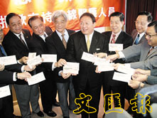 大聯盟已籌得四百二十萬元,支持前線醫護人員,由民政事務局局長何志平代為接收。 (莊海源 攝)