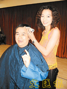 【本報訊】(記者 梁靜儀)「春天實驗劇團」頭炮舞台劇《少年梁醒波與少女譚蘭卿》下周末公映,老板高志森更粉墨登場扮演梁醒波,昨日更為了劇中烏龍王的造型進行剃頭儀式,其女友焦媛更落手為他主持剃頭儀式。
