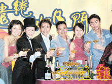 江華、楊思琦等人主演的新劇收視有好成績,開香檳慶祝。