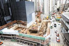 灣仔皇后大道東市區重建項目雖已批出五、六年,但因為收樓問題,至今地基仍在建造中。 (張偉民 攝)