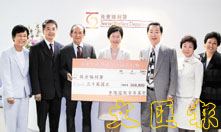 香港道教省真善堂昨向社署捐款三十萬元,支援全港安老院舍抗炎行動,由社署署長林鄭月娥代為接收支票。