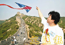 五月二十四日,一位青年在北京八達嶺長城愉快地放風箏。當日,「讓中國精神高高飄揚——放風箏 抗非典」活動在北京六處同時舉行。主辦者希望以輕鬆、健康的方式來表現中華民族樂觀向上、在災難面前不屈不撓的頑強精神。 (新華社)