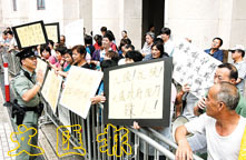 香港活家禽批發商商會及相關業界昨到立法會門外請願,強烈反對政府對提高香港清潔衛生水平建議時,完全禁止飼養及進口活家禽。 (趙焜崗 攝)