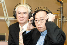 周融(左)及吳志森認為「沙士」事件反映烽煙節目終必摒棄謾罵之風,步向理性討論。 (劉國權 攝)