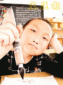 本報駐西南記者余茂智、黎濤成都報道:不用蘸墨汁,也無需使用硯台,一次吸滿墨汁,能寫上數千個毛筆字。日前,在四川省中小學生勞動技術教育創新大賽上,成都一七歲小男孩發明的不蘸墨「自來水毛筆」奪得了二等獎。