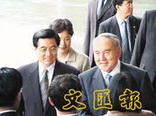 【本報訊】胡錦濤在哈薩克差不多完成所有雙邊活動,面對記者顯得特別輕鬆,還回答記者提問:「你對這次自己怎評分?」胡錦濤打趣的說:「這個……我還未學會評分,但是我自己可以作一下評估。」他表示,由俄羅斯以至法國到哈薩克,各個雙邊活動都達到預期目的,胡錦濤說:「先後我們接觸了有四十多個國家的領導人,既向他們介紹了我們中國國內的形勢,包括抗非典的形勢,得到了世界各國領導人的普遍理解和支持,同時我們也介紹了我們對當前一些重大國際問題的看法。我們和相當的國家有一些重大問題上廣泛的共識。」胡錦濤今日會轉到蒙古國最後一站訪問。【本報訊】