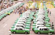 約五百輛新界的士司機聚集,抗議政府的減價決定。