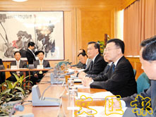 粵港警方舉行會晤會,曾蔭培率港方警務人員出席會議。 (于濱 攝)