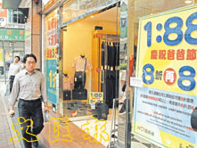 商場為慶祝父親節所推出的優惠充滿了吉祥號碼,如八、八八、八折再加八折等。 (李志樑 攝)