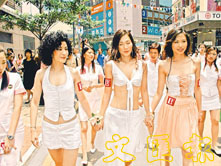 吳君如、張可頤、陳妙瑛三個性感靚女吸引途人的目光。