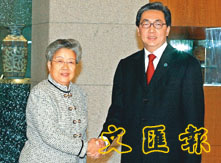 6月18日,中國國務院副總理吳儀在北京釣魚台國賓館與來訪的泰國副總理頌奇舉行會談。(新華社)