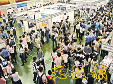 由職訓局主辦的招聘會,吸引大約三千人參加,競逐三百多個職位。 (馮麗明 攝)