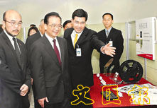 【本報訊】(記者 孔慧敏)國務院總理溫家寶旋風式訪港三天,最後一站是參觀坐落吐露港海傍的科學園,負責科學園規劃及發展的香港科技園公司行政總裁譚宗定表示,溫總認同科學園針對性發展的大方向,並在首睹12吋晶圓及晶體後,認為香港可以在某些科技領域上,走在內地前頭。