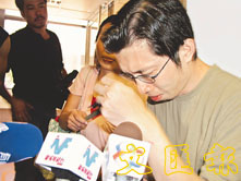 心急如焚的蔡先生在下午三時才獲知女友死訊,當場痛哭。 (甄健輝 攝)