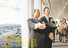 黃植榮(左)介紹國金二期建築,右為國金中心項目總監董子豪。(張偉民 攝)