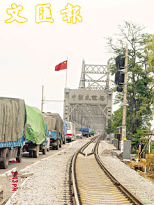往返於鴨綠江大橋的貨車。
