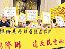 約七十名公屋居民要求房委會盡速檢討租金。 (盧燕娥攝)
