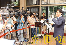 林瑞麟於政府總部會見記者。 (李志樑 攝)