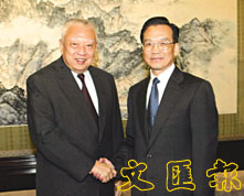 國務院總理溫家寶會見香港特首董建華。 (新華社)