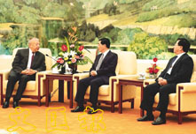 國家主席胡錦濤和副主席曾慶紅會見香港特首董建華。(中新社)