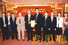 澄海區陳國光書記(左六)致送紀念旗予吳哲歆會長(左五)。