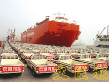 圖為等待裝船運往海外的長城皮卡。