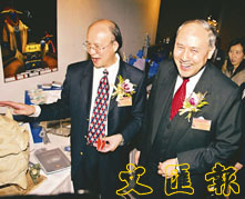 梁定邦(右)、梁定雄兄弟介紹產品。 (張偉民 攝)