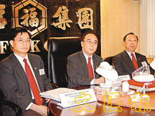 黃偉常(右)表示,六福計劃在廣州及深圳先獨資開兩三個分店,視乎市場反應才擴充。左為羅添福。 (孔慧敏 攝)