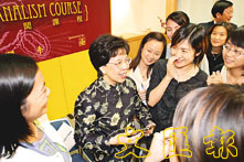 陳太昨日亦成為一眾小朋友的偶像,兩位小五學生林洋洋及陳伽泓,會後不惜鑽入十多名記者堆中,索取陳太的簽名,最後如願以償。兩人歡喜地向記者展示「戰利品」,同聲表示「捨不得陳太」。
