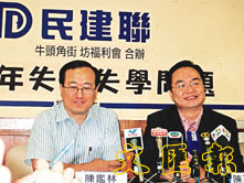 民建聯調查發現,八成多應屆畢業生對就業前景感到悲觀,並將責任歸咎政府。左為陳鑑林,右為陳再鋼。 (黃錦佳 攝)