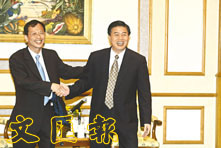 廣東省省長黃華華昨日在下榻的酒店會見民建聯七名代表,就粵港兩地如何加強合作等問題,交換意見。民建聯主席曾鈺成在傳媒拍照期間,把握機會,要求黃省長將廣東省在開放個人赴港旅遊方面的經驗向中央匯報,協助香港爭取將計劃擴展到全國。黃省長爽快地回應說,「廣東省無問題,我們會全力以赴,放心!」