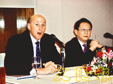 雅高亞太區董事總經理艾森柏(左)及亞洲首席副總裁邵棟來昨出席記者會。(孔慧敏 攝)