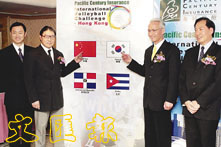 女排挑戰賽昨天開記者會宣布詳情。霍震霆和贊助商主持抽籤儀式。(盧炳輝攝)
