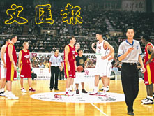 【本報訊】國家籃球隊於八月十二日在天津體育場舉行最後一場與澳洲老虎隊的巡迴友誼賽,大會邀得謝霆鋒擔任開球儀式的嘉賓。本來已自備衣服的他當看到大會安排送給球迷的衣服,二話不說地也要穿這件衣服出場,而這件衣服特別之處是前面印上中國隊的用龍及背後有老虎隊用虎來繡上的圖案,因時間緊迫在場的工作人員立即分頭去找一件合身的衣服給他。