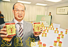 海關商標調查組指揮官黃永輝展示左真、右假的養陰丸。