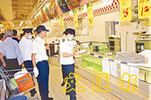 食環署人員到置富百佳超級市場封閉含霍亂菌的魚檔。