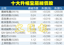 十大升幅股以股仔為主