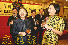 前線七周年,梁愛詩到賀,與卿姐是否「一笑泯恩仇」? (劉國權 攝)
