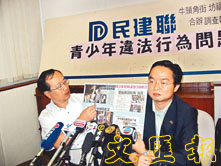 陳鑑林及陳再鋼建議從社區、家庭和學校三管齊下遏止青少年違法之風。 (陸智豪攝)