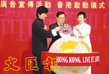 曾蔭權、周梁淑怡及成龍在宣傳片啟動儀式上。