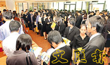 市道好轉,大學生就業職位大增。圖為月前大批大學生到招聘會求職。 (資料圖片)