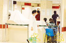 接收懷疑SARS病人的瑪嘉烈急症室分流區,用白布蓋著等候消毒。