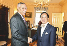 政務司司長曾蔭權昨日(華盛頓時間九月十九日)與美國國務卿鮑威爾在華盛頓的美國國務院會晤。